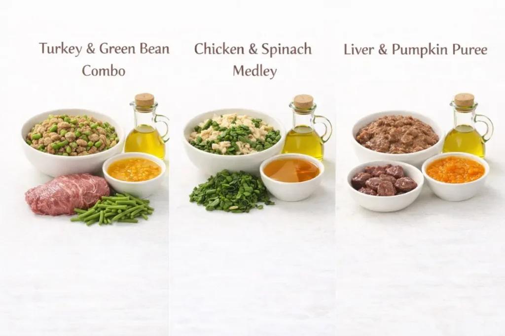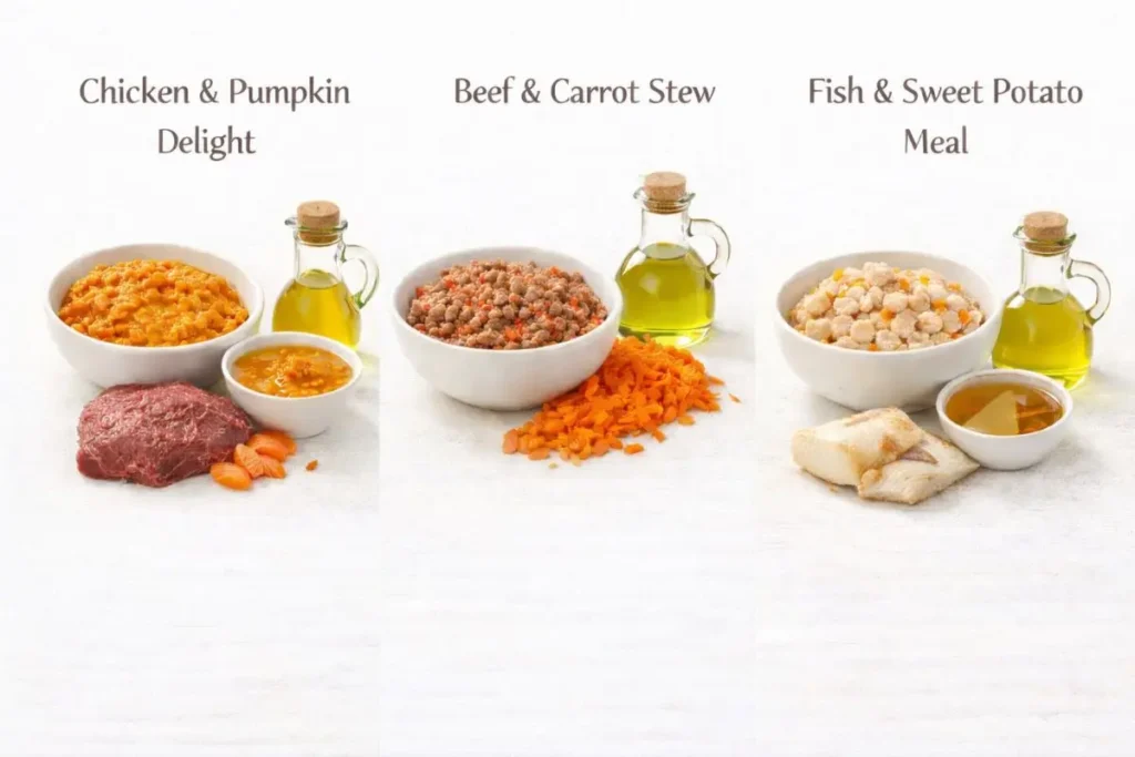 Solution: Rotate proteins (chicken, turkey, fish) and vegetables (pumpkin, carrots, green beans) to ensure a balanced diet.