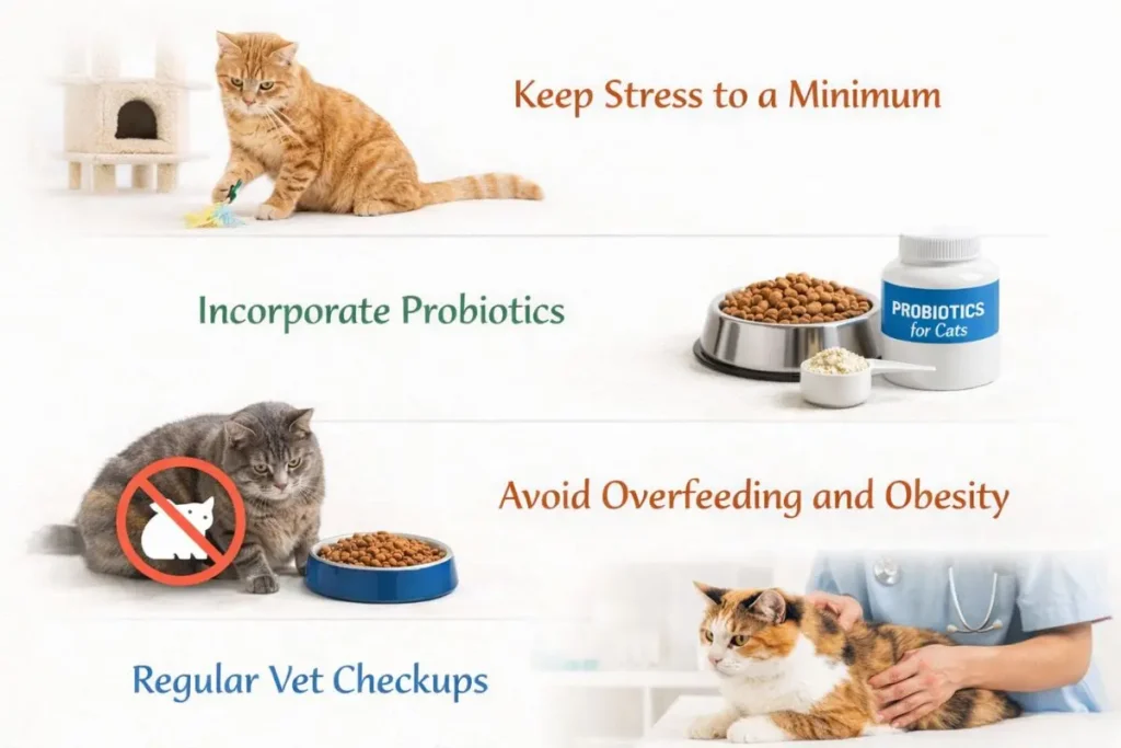 Take your cat for annual checkups and bring them to the vet immediately if you notice any signs of digestive distress, such as vomiting, diarrhea, or loss of appetite.