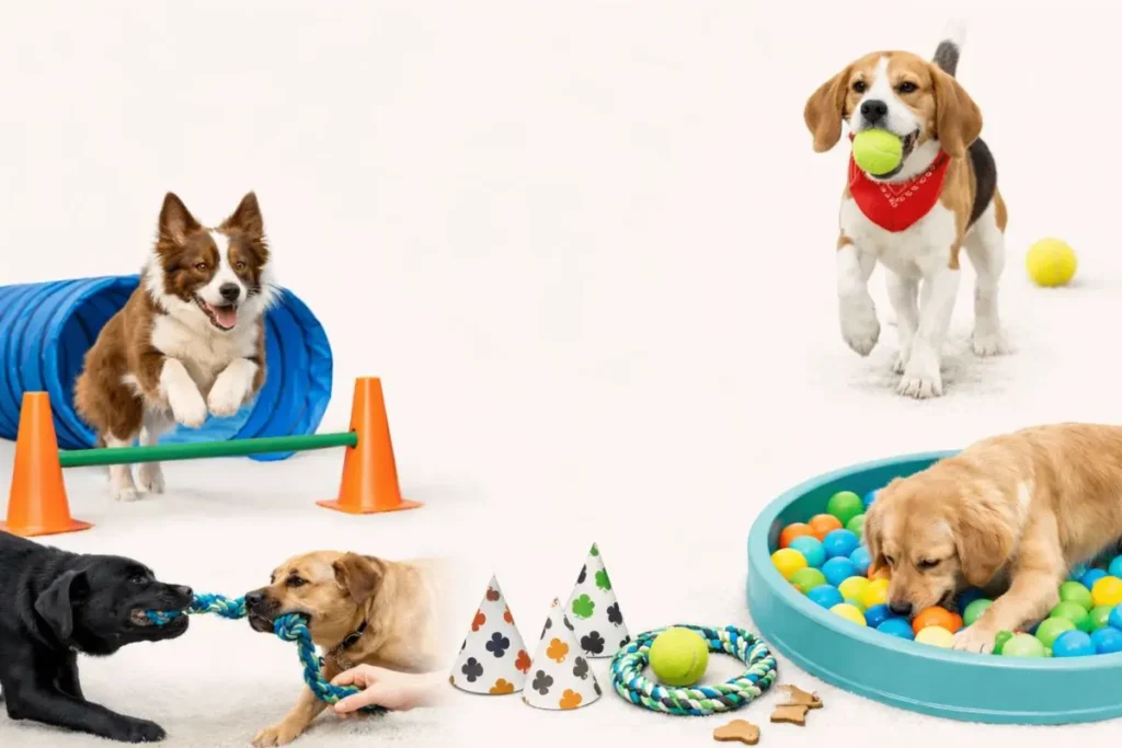 - Dog-Friendly Games: Try “musical chairs” with dogs by playing music and having them walk around a circle of treats.